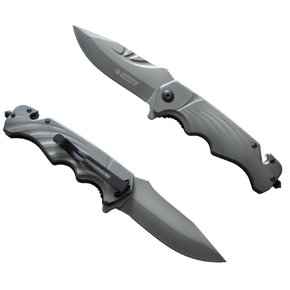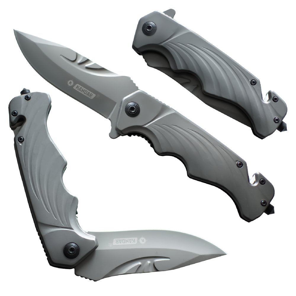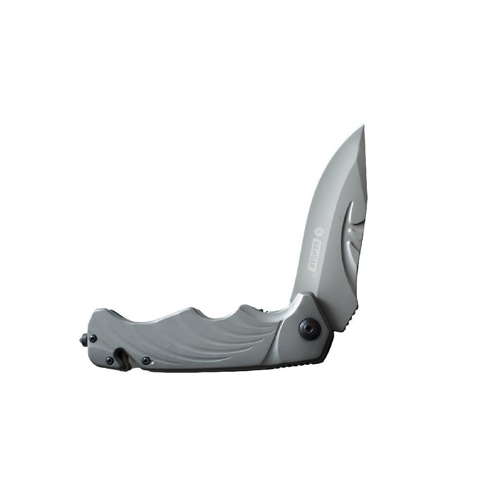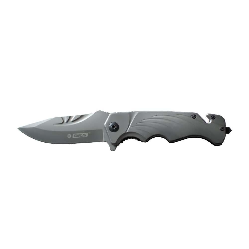 Składany nóż ratowniczy Kandar NS24 ze stali 440. Wyposażony w zbijak do szyb, przecinak pasów i blokadę Liner-Lock. Idealny nóż EDC i taktyczny.