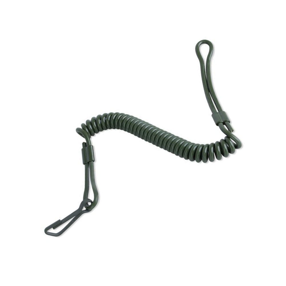 Smycz spiralna Mil-Tec Olive – taktyczna smycz do broni bocznej z rdzeniem z KEVLARU i stalowym karabińczykiem, zapewniająca niezawodne zabezpieczenie pistoletu i akcesoriów.