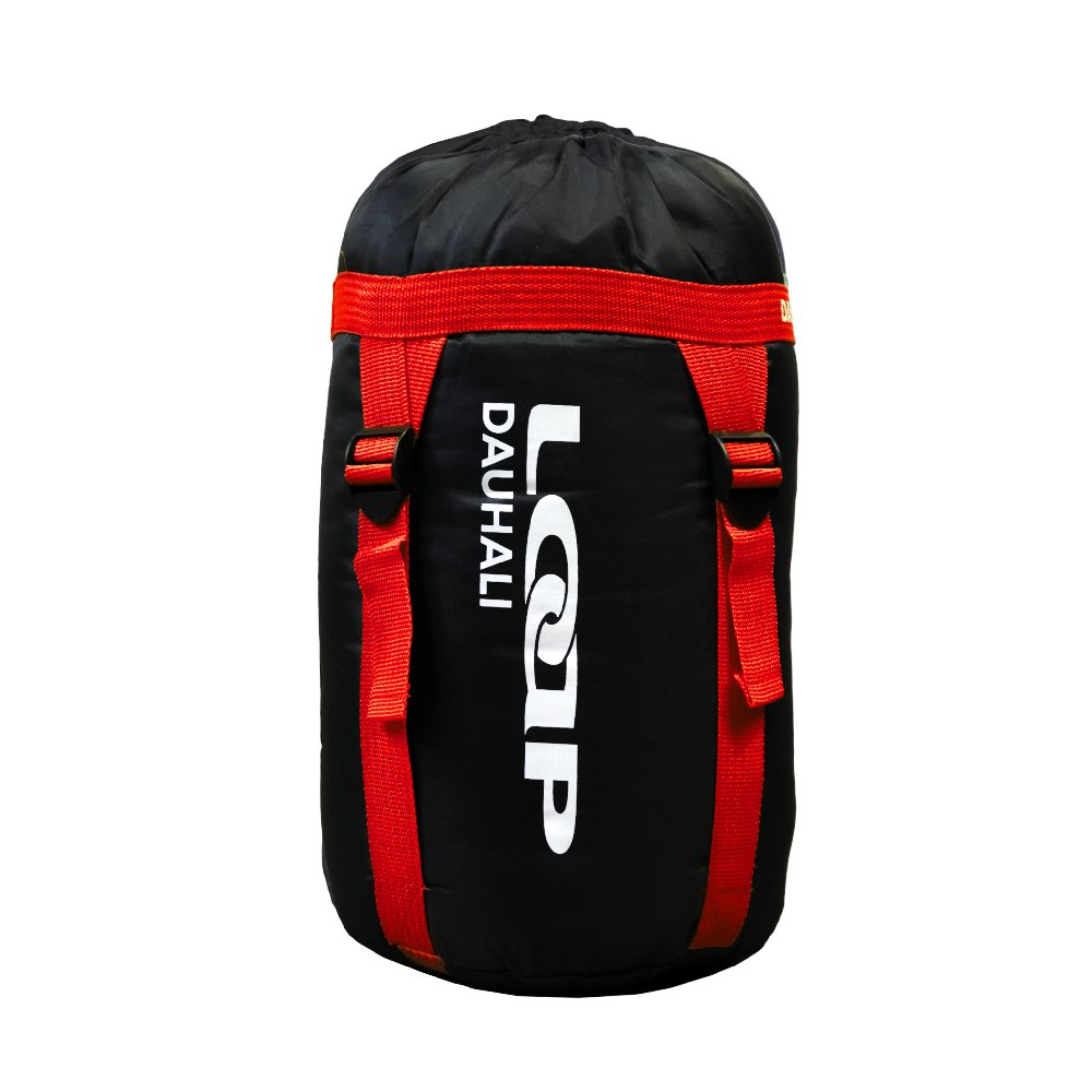 Śpiwór Loap Dauhali V11G Black/Red Right – lekki śpiwór mumia z kapturem i kieszonką. Komfort 12°C, kompaktowy, szybkoschnący, idealny na biwak.