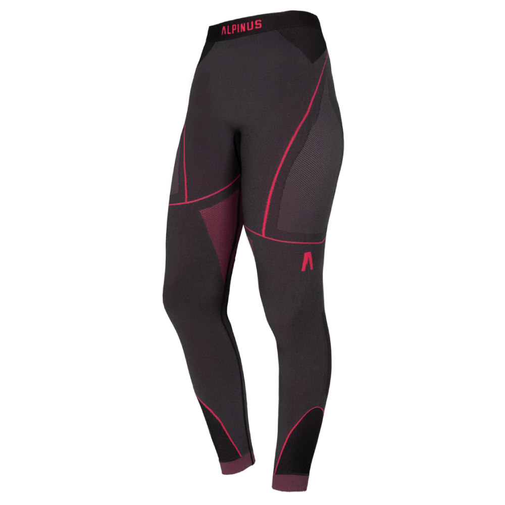 Damskie spodnie termoaktywne Alpinus Mora w kolorze grafitowym z różowymi detalami. Dwuwarstwowa konstrukcja Double Layer, technologia bezszwowa i strefy wentylacji.