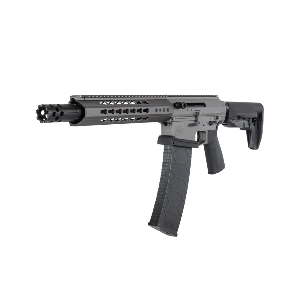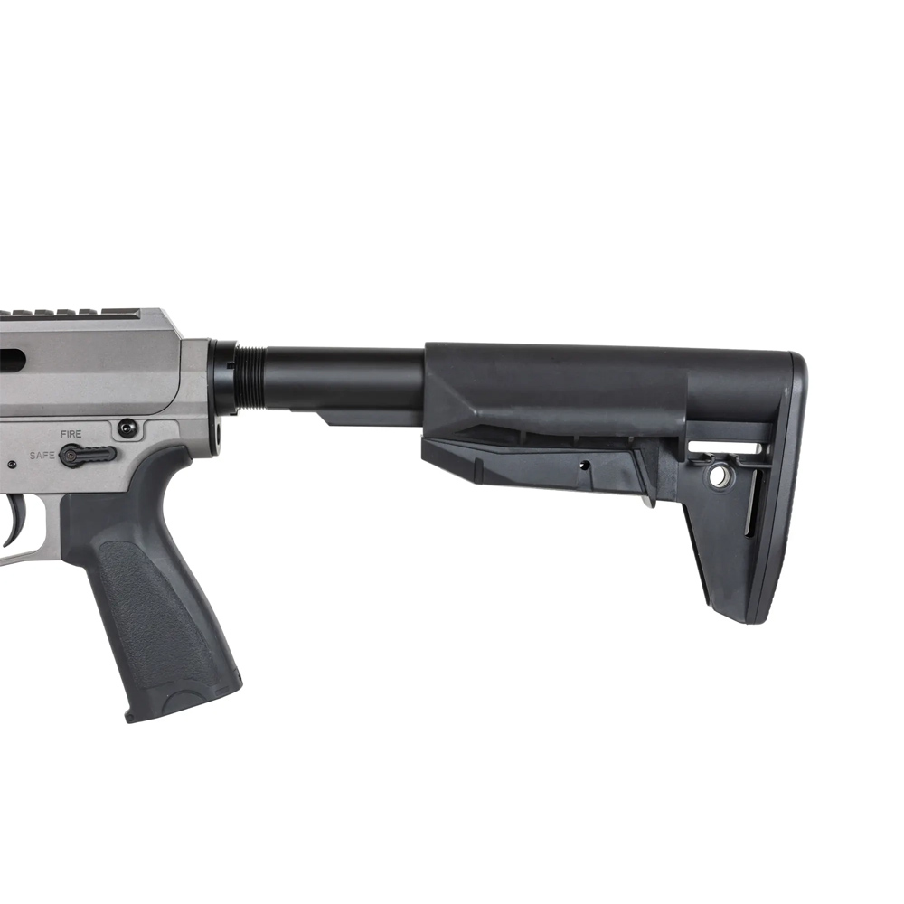 Replika została wykonana ze stali, aluminium oraz wytrzymałego tworzywa. Ze stali wykonano śruby. Z aluminium wykonano: korpus repliki, świetnie wyglądający tłumik płomienia (na gwincie 14mm CCW), 10-calowe łoże Key-Mod oraz szynę RIS, które pozwolą zamontować dodatkowe akcesoria jak np. optyka, chwyt przedni czy laser. Dodatkowo z aluminium wykonano lufę zewnętrzną oraz prowadnicę kolby. Wytrzymałe tworzywo wykorzystano przy produkcji kolby oraz ergonomicznego chwytu pistoletowego, który posiada chropowatą powierzchnie – pomoże to poprawić stabilizację dłoni na chwycie podczas przemieszczania się.