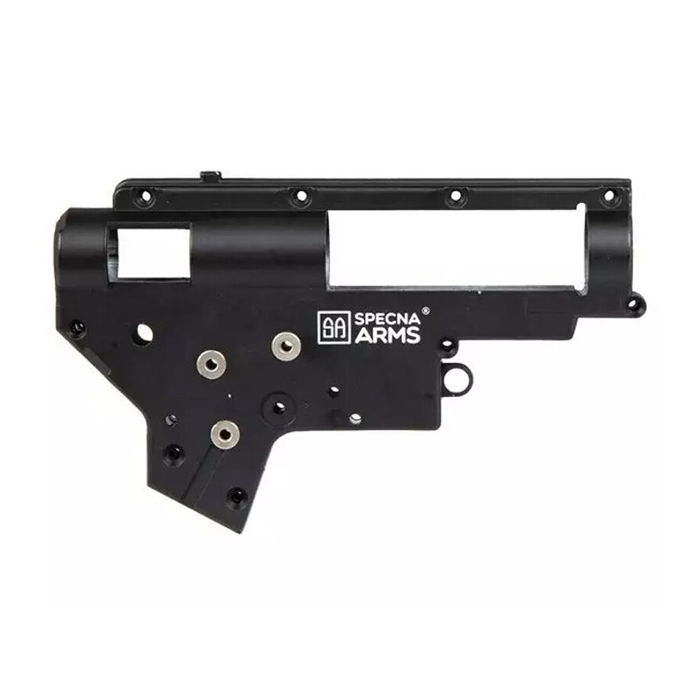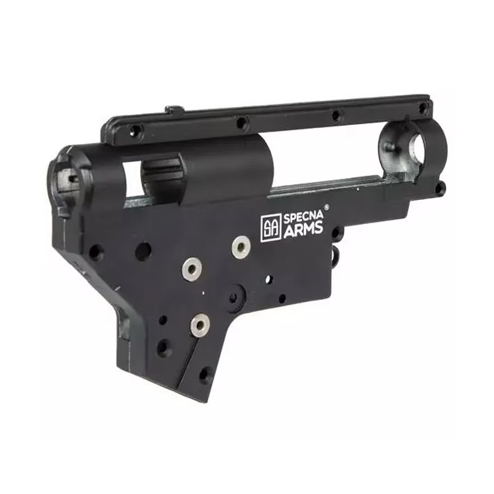 Szkielet gearboxa Specna Arms CORE V2 do replik AR15 — metalowy, lekki i trwały, kompatybilny z systemem ESA (szybka wymiana sprężyny). Wyposażony w łożyska 8 mm, waga 295 g. Idealny do tuningu i modernizacji ASG.