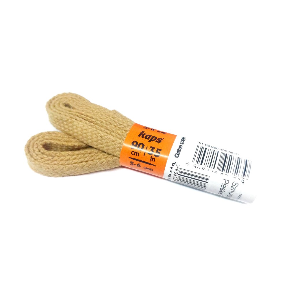 Sznurówki Płaskie Kaps 120 cm Beżowe – wytrzymałe bawełniane sznurowadła do obuwia sportowego, trekkingowego i codziennego.