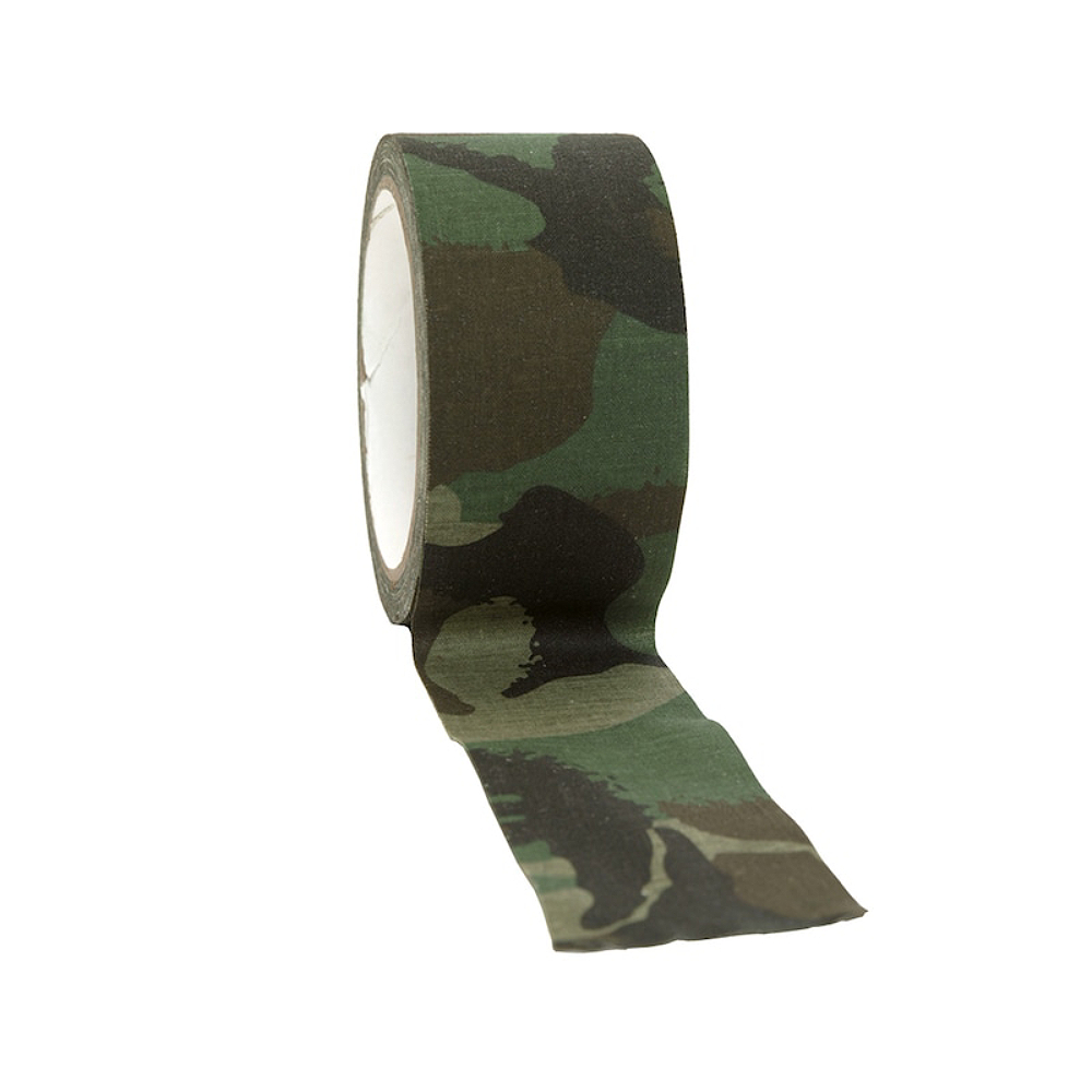 Bawełniana taśma maskująca Mil-Tec w kamuflażu Woodland. Wodoodporna, matowa i elastyczna. Długość 10 m. Nie pozostawia śladów kleju. Idealna do replik i sprzętu.