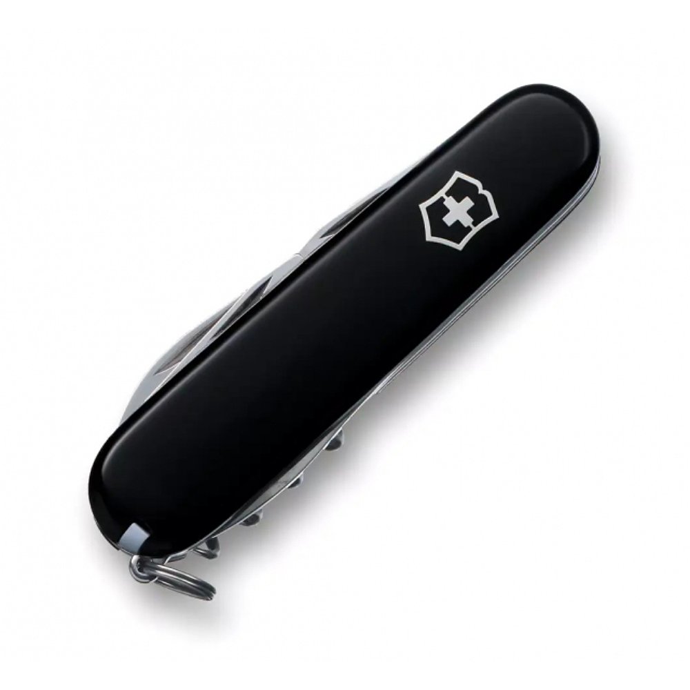 Wyposażony w dwa ostrza, zestaw śrubokrętów, otwieracze, korkociąg i rozwiertak, sprawdza się jako niezawodne narzędzie EDC. Czarna obudowa z trwałego tworzywa ABS/Celidor nadaje mu elegancki i nowoczesny wygląd, a dzięki wadze 59 g i długości 91 mm scyzoryk jest wyjątkowo lekki i poręczny.