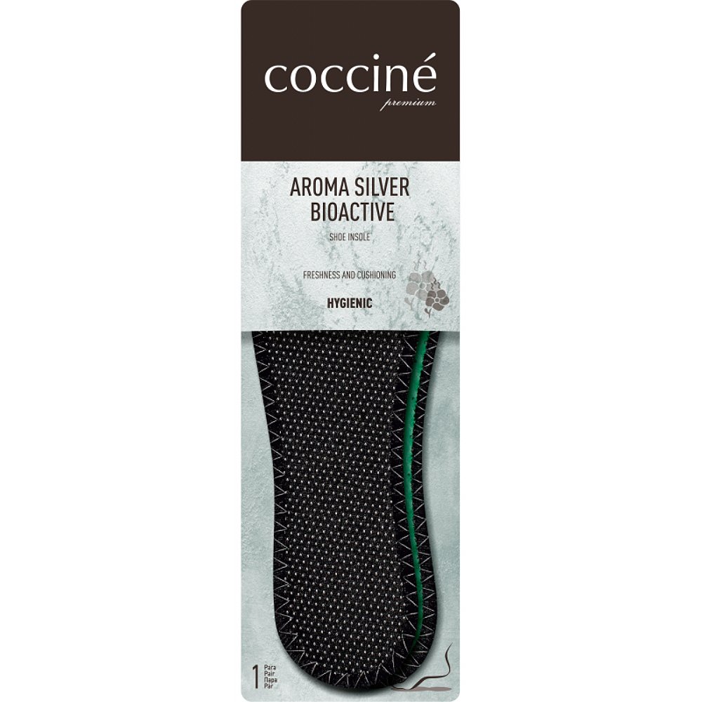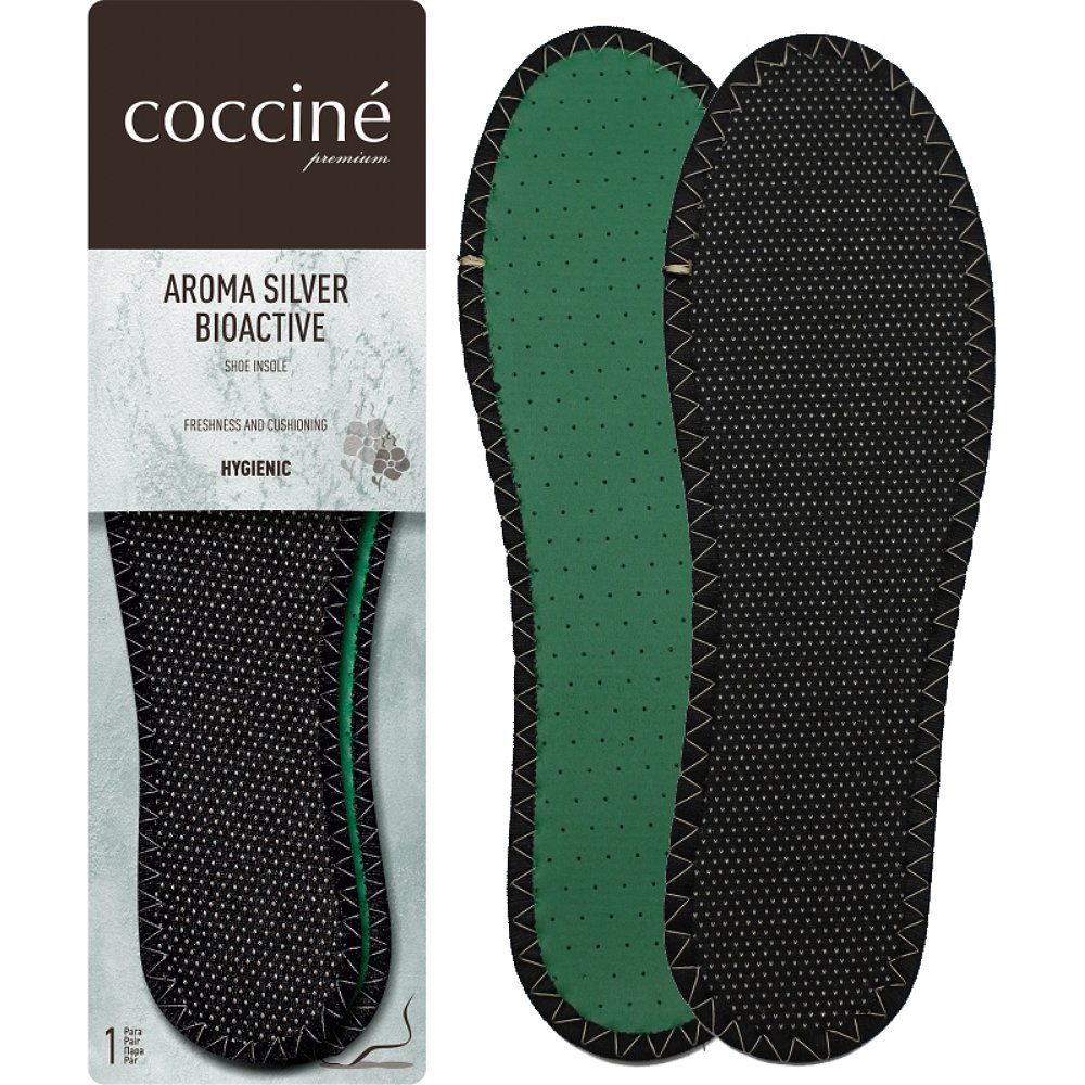 Wkładka Cocciné Aroma Silver to specjalistyczny produkt łączący funkcję ortopedyczną z zaawansowaną ochroną biologiczną. Zaprojektowana z myślą o osobach poddających stopy dużym obciążeniom, zapewnia bezkompromisowy komfort oraz długotrwałą świeżość wewnątrz obuwia. Dzięki zastosowaniu bioaktywnych składników, wkładka stanowi barierę dla drobnoustrojów, jednocześnie dbając o zdrowie układu kostno-stawowego.