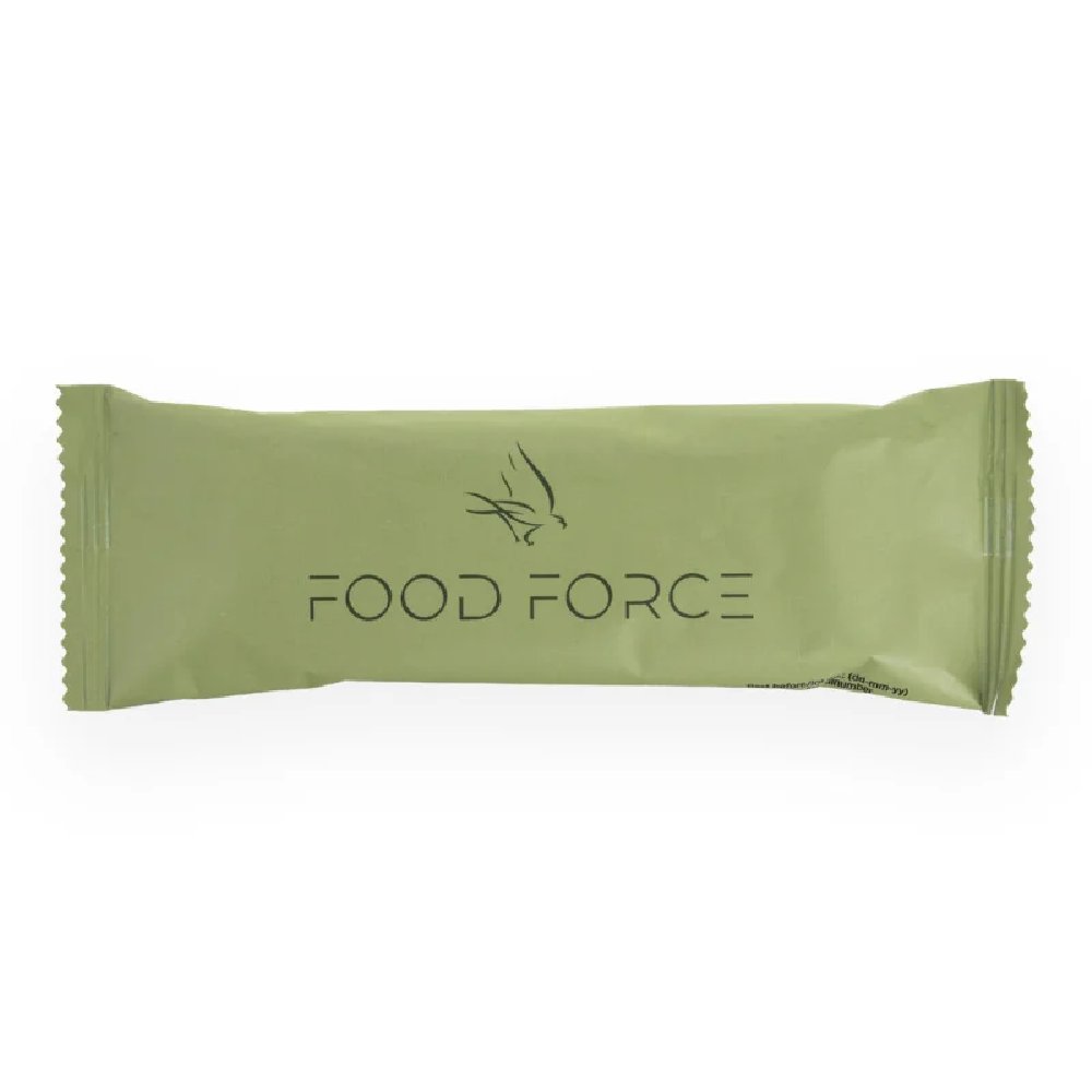 Baton Food Force dostarcza skoncentrowaną dawkę energii, niezbędnej podczas intensywnego wysiłku fizycznego lub w warunkach ograniczonego dostępu do posiłków. To rozwiązanie inspirowane wojskowymi racjami żywnościowymi, gdzie liczy się skuteczność i niezawodność.